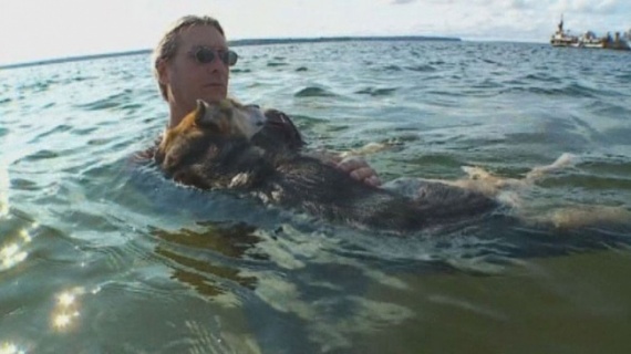 Шеп, которому на момент этой знаменитой фотографии было 19 лет, был болен артритом. Чтобы хоть немного облегчить его страдания, каждый день Джон водил его на озеро Верхнее. Джон брал пса на руки и заходил глубоко в воду. Вода позволяла собаке наконец-то расслабиться настолько, что боль утихала и Шеп мог спокойно подремать на груди у хозяина.