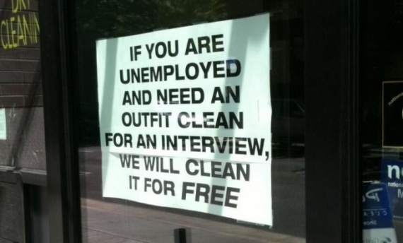 Если вы — безработный, и вам нужно постирать одежду для собеседования, мы сделаем это бесплатно.