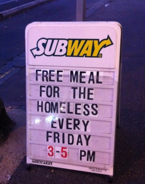 Бесплатная еда для бездомных. Каждую пятницу с 15 до 17 часов.